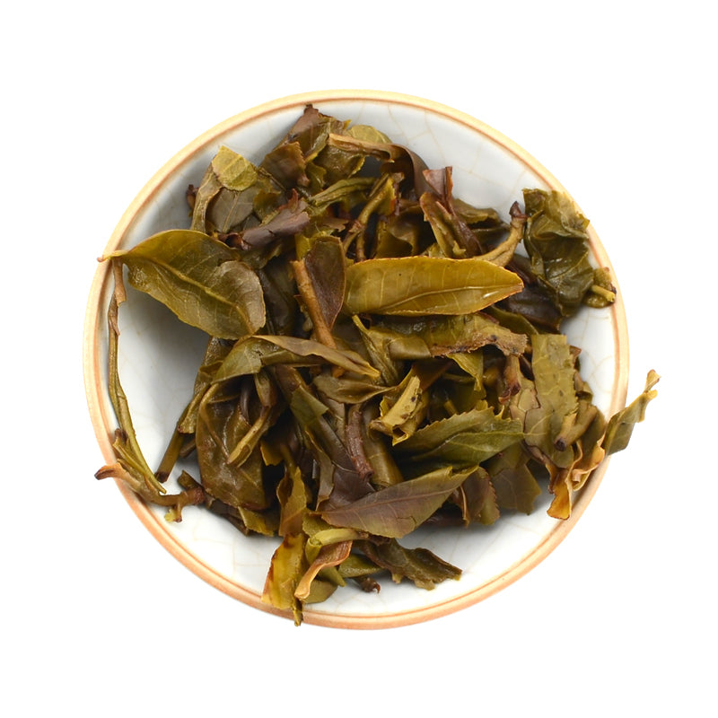 Pressed in 2021. Each cake is 200g. The cakes are wrapped in bamboo leaf tongs, with five cakes per tong.