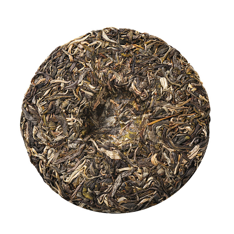Pressed in 2024. Each cake is 200g. The cakes are wrapped in bamboo leaf tongs, with five cakes per tong.