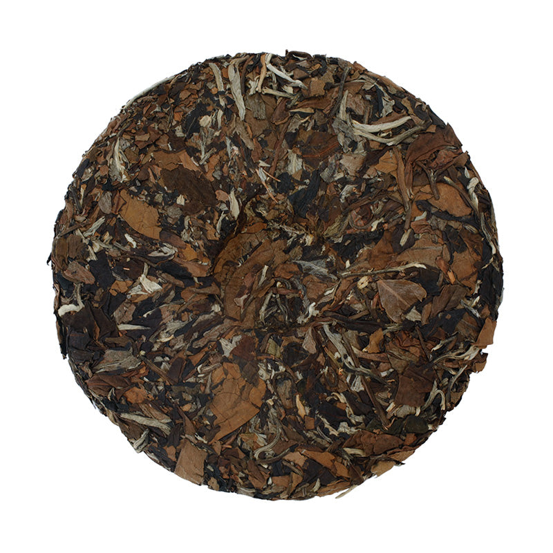 Old arbor sun dried white tea from Yunnan sent to Fujian province in 2025 to be hand charcoal roasted in the Wuyi mountains by veteran yancha oolong makers. The Terry blend was rested until early 2026 when it was pressed.