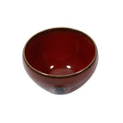 A blood red glazed teacup with a skull on the side.