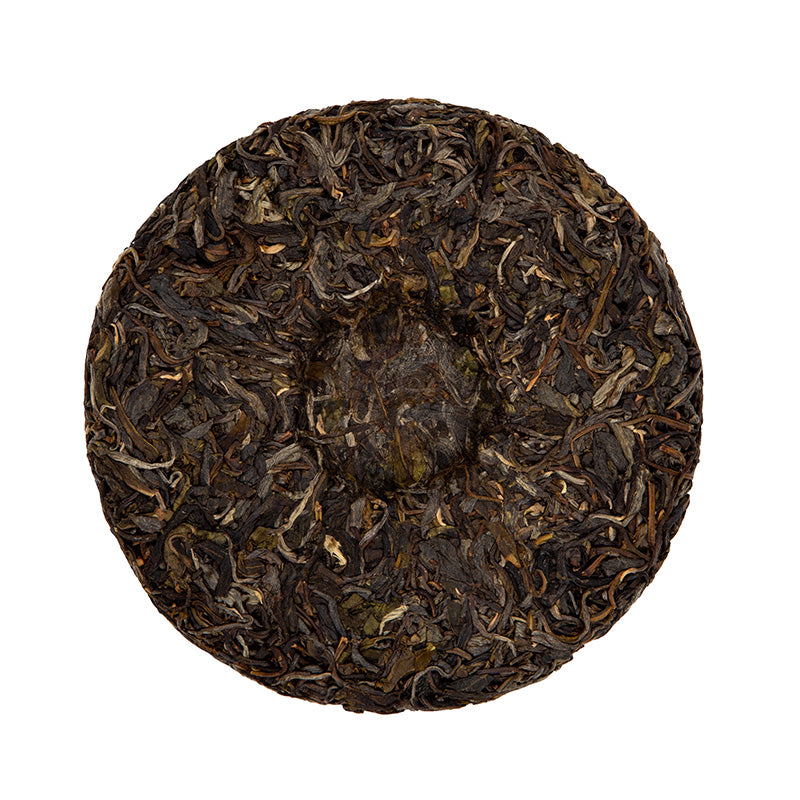 Pressed in 2023. Each cake is 200g. The cakes are wrapped in bamboo leaf tongs, with five cakes per tong.