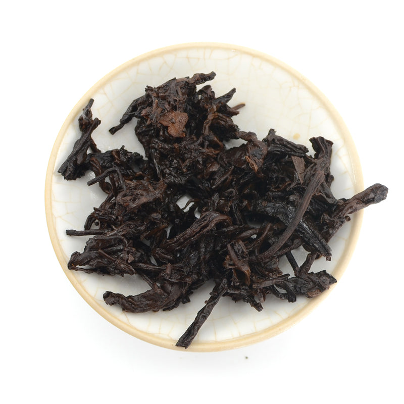 The pine smoke character is laced through the blend with an intense nose that will settle into the base of the tea with aging, eventually transforming into a rare combination of flavors and aromas that few Puer teas can mimic.