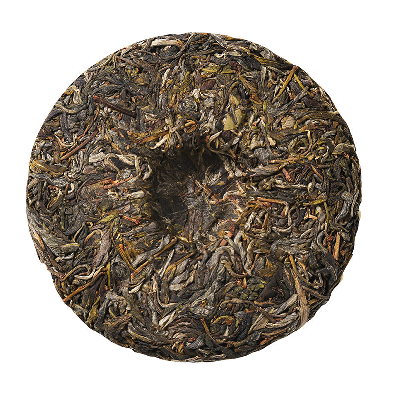 Pressed in 2024. Each cake is 200g. The cakes are wrapped in bamboo leaf tongs, with five cakes per tong.